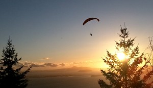 At the peak there was a parking lot with cars. Boo. But there were paragliders. Yay again. There are 2 sports I would like to try, kite boarding and paragliding. They both use the same equipment – one jumps off a cliff (like these guys) and the other skims the water on a board.