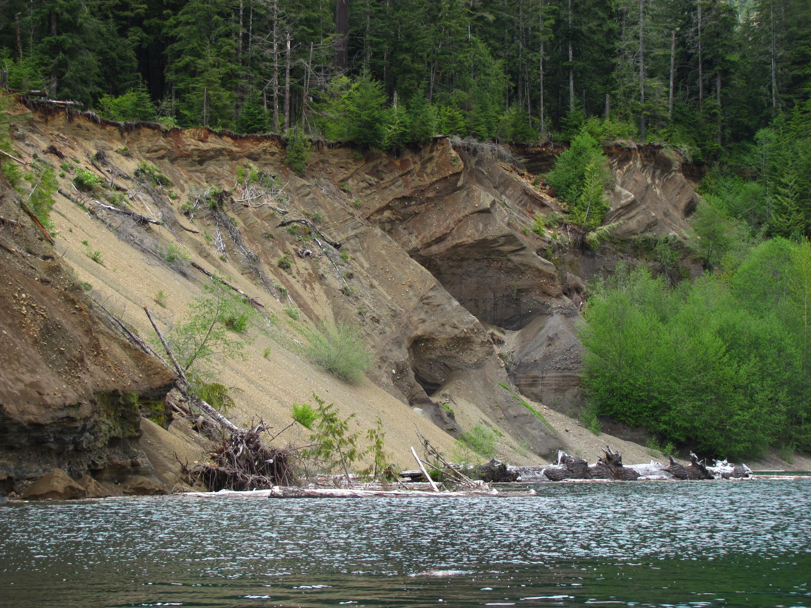 did a safety check and I had to blow my whistle. Wonder what it would have cost me if I had forgotten like other times? Actually, I would not have forgotten because this was a new and big lake to me, deep and cold, and I paddled all the way to the delta to see if there was quicksand [like the other time :(] – no quicksand – only strange sedimentary formations and Mergansers. Paddled just over 16 miles, way more than intended.