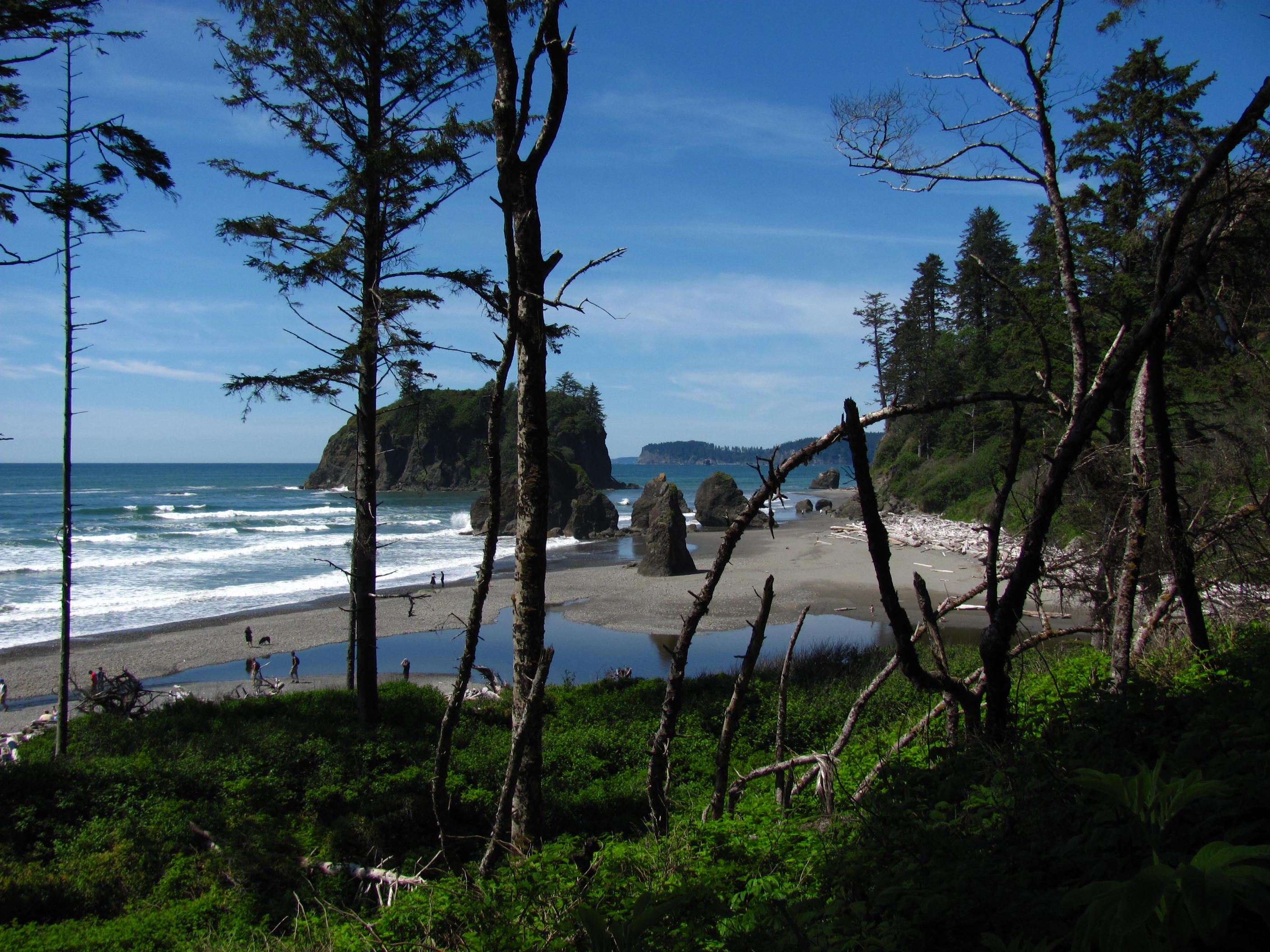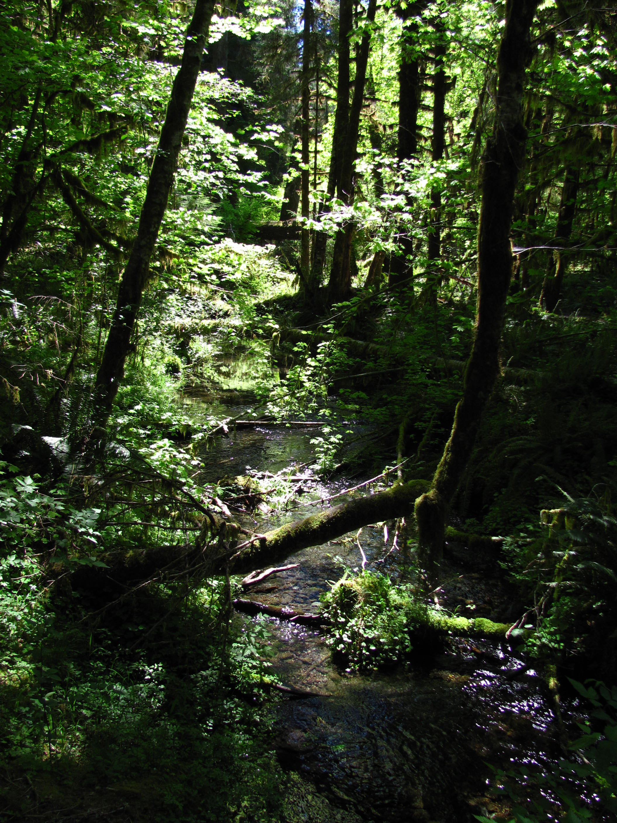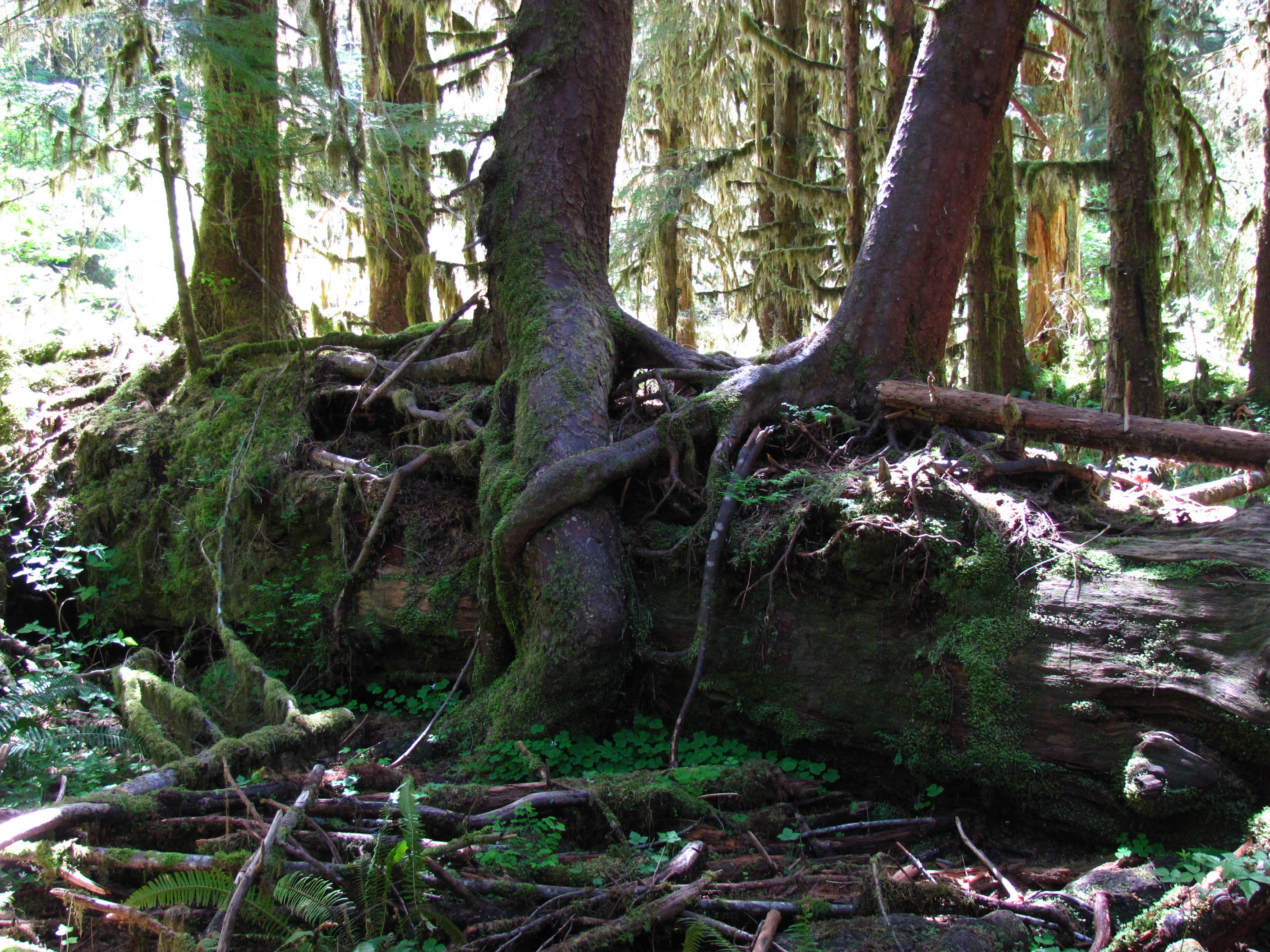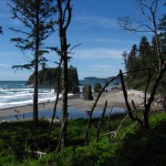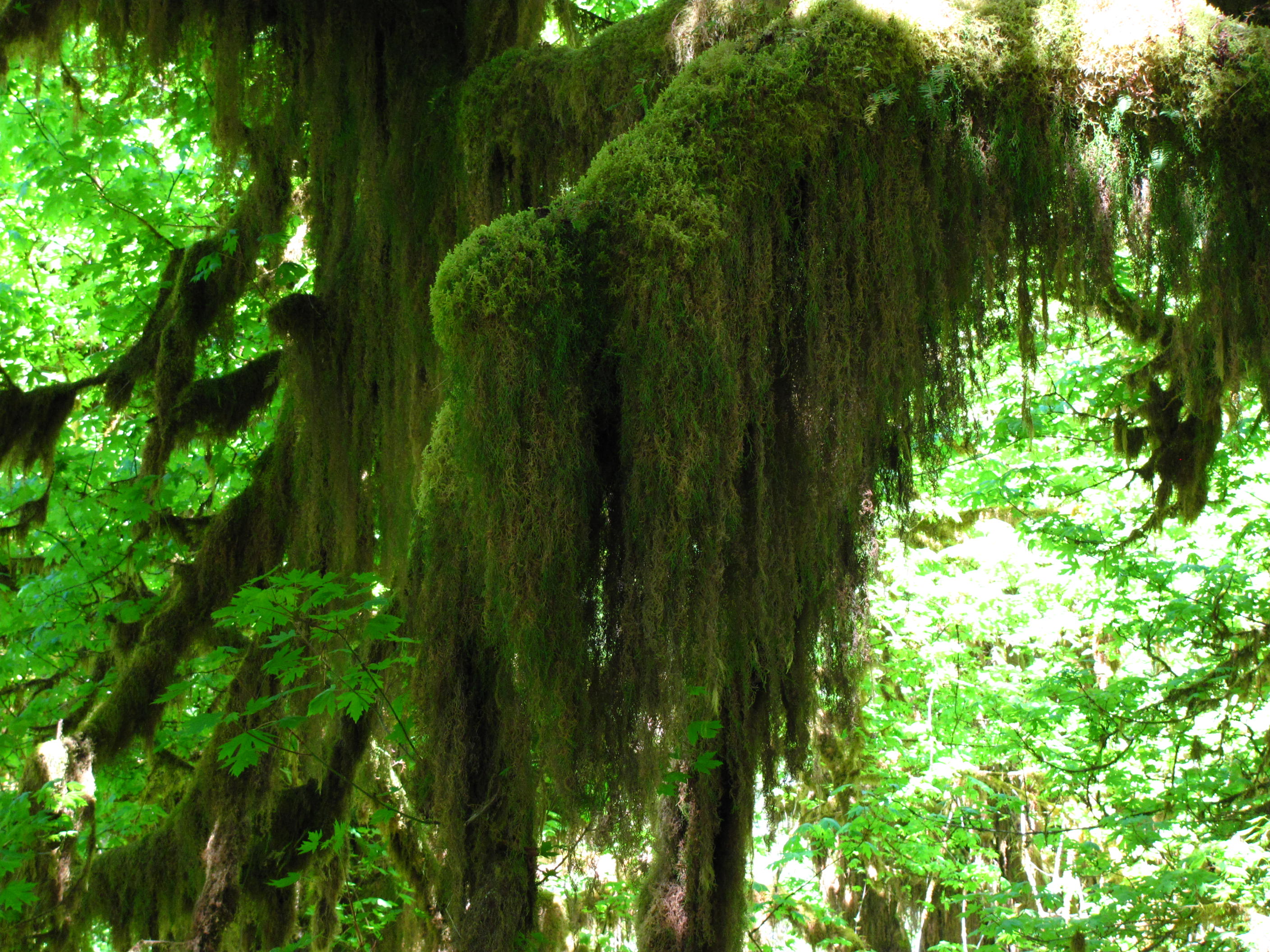Still camping at Kalaloch – no shade at my campsite, it was 95+ degrees in the tent and I was faced with 17 hours of sun – 16 hours more than my dermatologist recommends (poor me). Solution? Rain Forest! Less than a 90-minute drive and I was hiking along the Hoh river and in the Hoh Rain Forest. Faithful readers will know that this represent a significant milestone in my as-yet-unrecognized-for-its-greatness series: Moss on Stuff. Despite the drive time to the Hoh (and to Forks afterwards to pick up some ice from the Twilight store), I still spent lots of time of on the beach and took some terrific photos (my opinion).