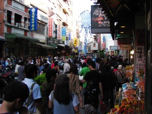 See? sometimes the sidewalks are crowded… This is Damshui (Yes CJ, on another very hot sunny day) and I am pretty sure most of Taipei was there.