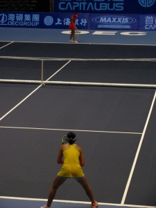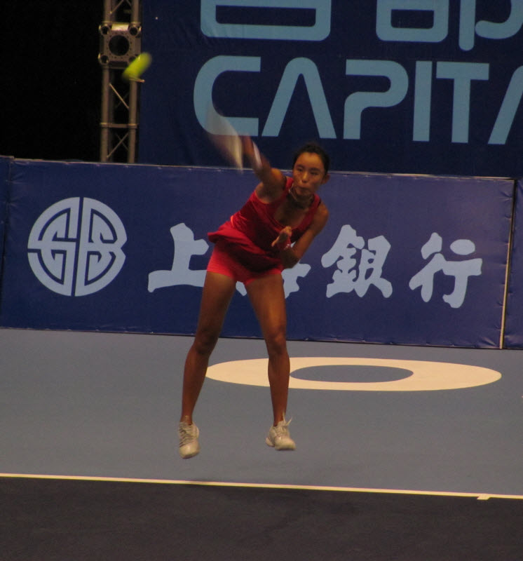 Took a couple of hours away from the office and walked less than 10 minutes to the Sports Center here to watch Pro Tennis (2011 Taipei Ladies Open). Lots of regional players and a few ranked in the top 200. Intense, fast and good play. First, a local against a Chinese competitor, then Olga Govortsova against Karolina Pliskova (who played 2 matches in a row when I was there and also plays doubles with her sister) and then Wang Qiang below (intensity). Hard to believe how much in Asia has changed. Admission free with non-monetary donation, sat in the 3rd row (yes, the pics are from my camera).