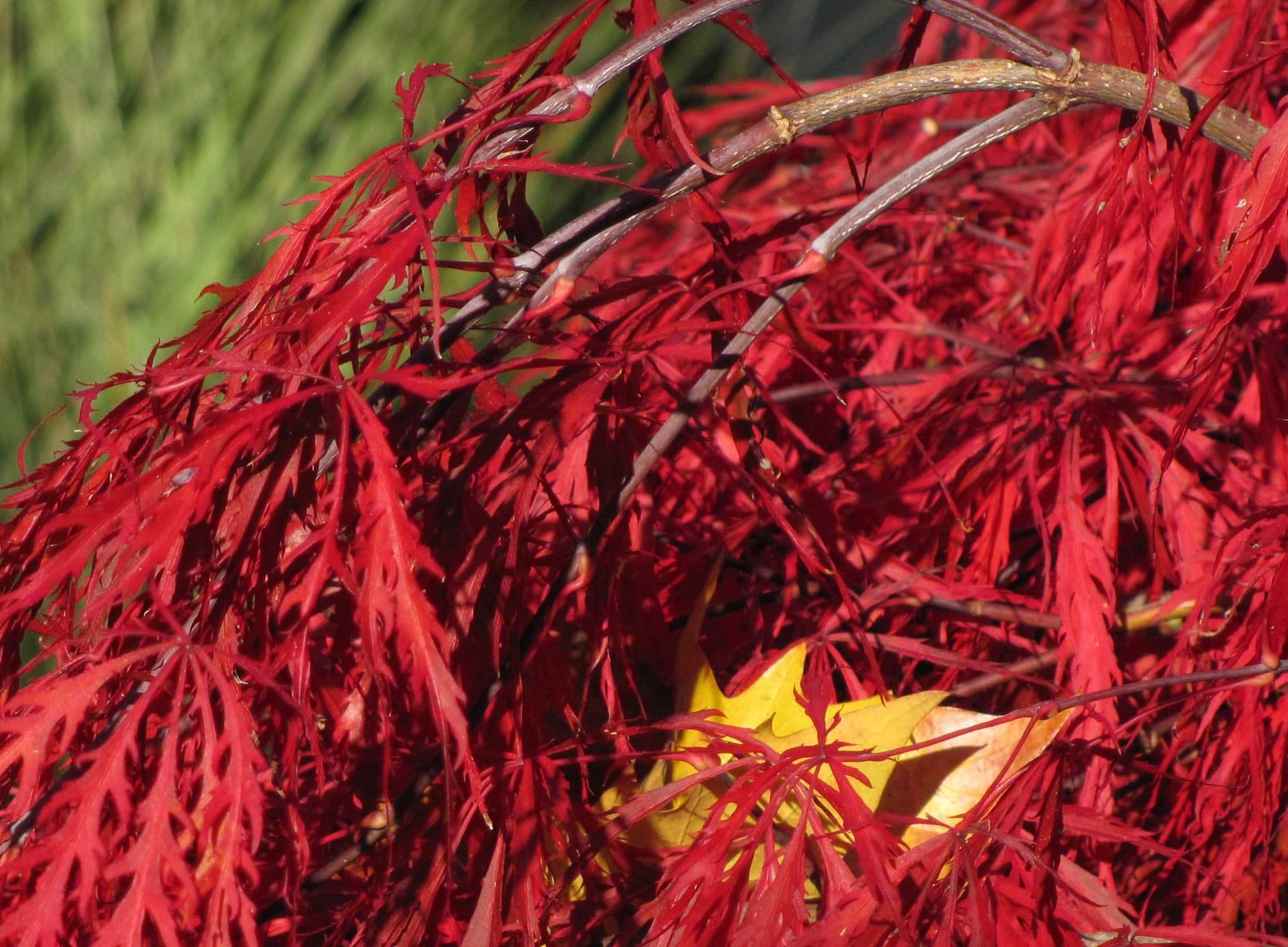 This is my attempt to capture the improbable color of the Japanese maple in our front yard.