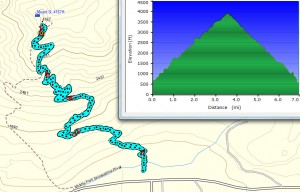 Question Diane: if the hike was over 7 miles on the map, but it included over a mile of elevation gain and loss, then shouldn’t that be added to the hiking total to make it over 8 miles? Nah, because 8 miles of hiking on flat land would not look as impressive at the profile of this hike. I guess I should just leave it alone. Next time I am going to take my bathroom scale and weigh myself with full pack and lunch at the start of the hike and then again at the end with all the water eco-recycled, sweat sweated and lunch calories burned to see what the difference is. The reason I say this is because I actually weighed 4 lbs more later that night (from taking in liquids to recover).