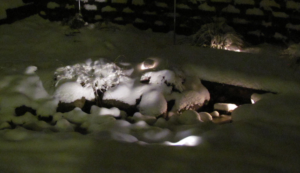 Went for a 3-mile hike in the snow. It is nice when you can have an adventure just by walking out the front door. Now on our 4th day of snow and ice. It has stopped everything around here. I did not clear the sidewalk but I did shovel the yard (drainage channels for when the warm rain hits Friday). We are really enjoying our backyard lights in the snow and the birds are really enjoying our feeders.