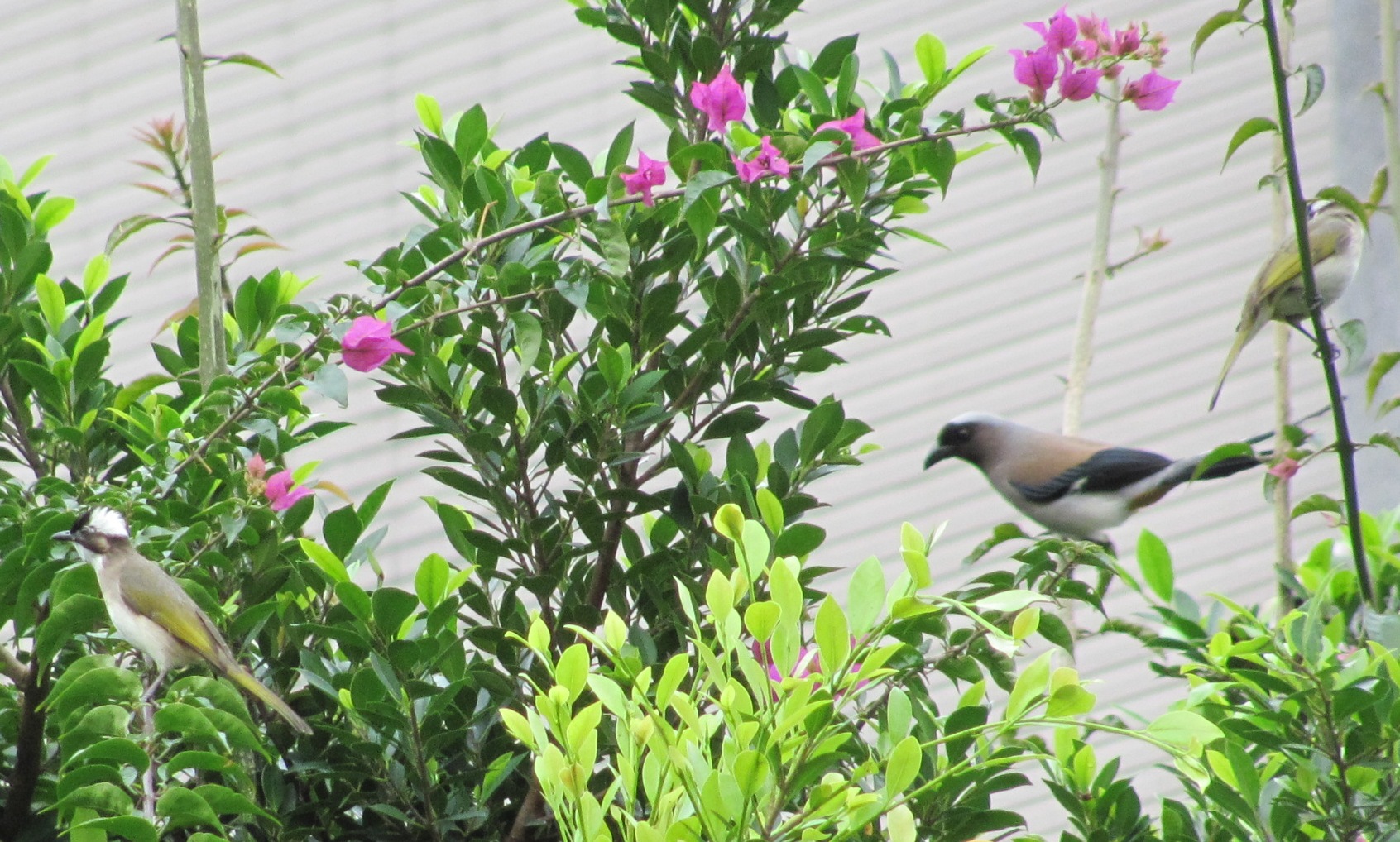 Actually had an adventure! After 10.5 hours straight at my PC I had cabin fever (or at least the tall-apartment-building-in-asia-fever version of it), so I went for a walk and let my feet go where they wanted. I followed them to the subway for a ride to a park on the outskirts of town, around a lake and then up Mt Egret ???? (more like Egret Hill but it was steep and the trail up was almost a mile and I was huffing and puffing). I did see egrets but took pics of these birds near the apt instead <3 hours RT