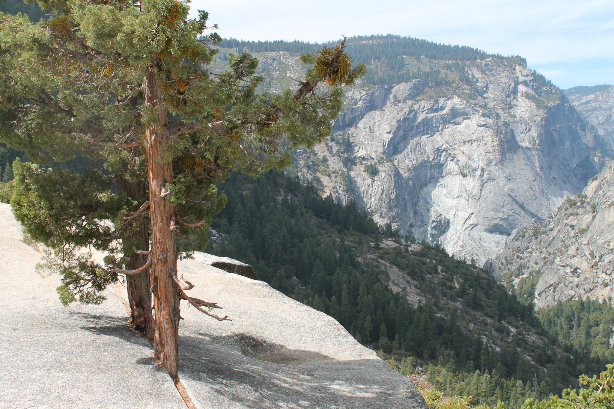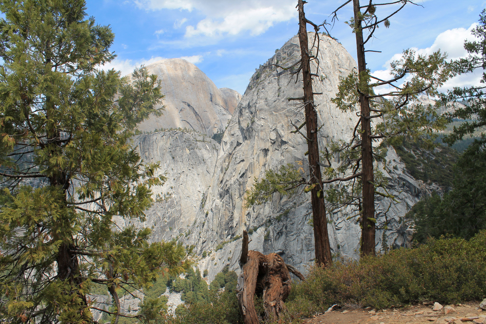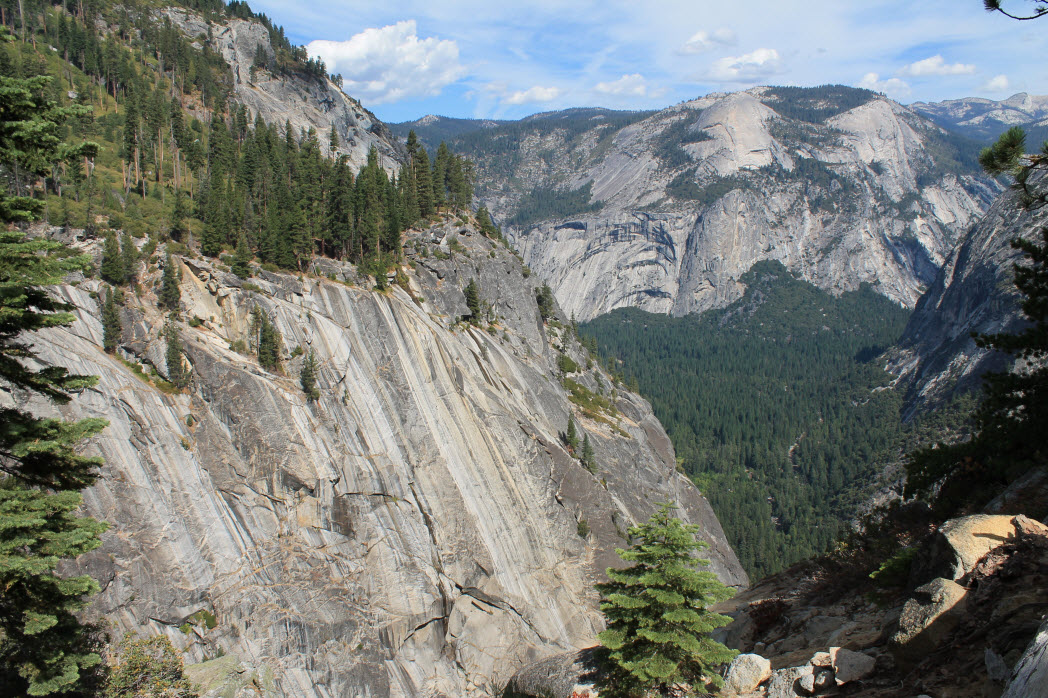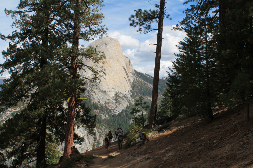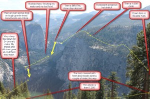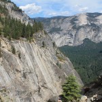 The park claims it is 8.5 miles but my GPS said I did 9.7. Not my fastest hike as it took 5 hours. That is 2 miles per hour, but the camera was getting well over 80 photos per mile (ppm?) until the steep descents. Here are a few pics for now, I will post more photos later on the other site. Camera lessons learned from this hike are: don’t need the telephoto in the Sierras (guessed that and did not bring it), granite in the sunlight with a dark blue sky and green trees is more contrast than even a great camera can handle – no wonder Ansel ran photography classes here, I may have to buy some app to help adjust the pics. Also, if you only have one lens and a few settings, spend the 5 minutes to check them before you go to a place like this. Huge opportunities missed once again – d’oh