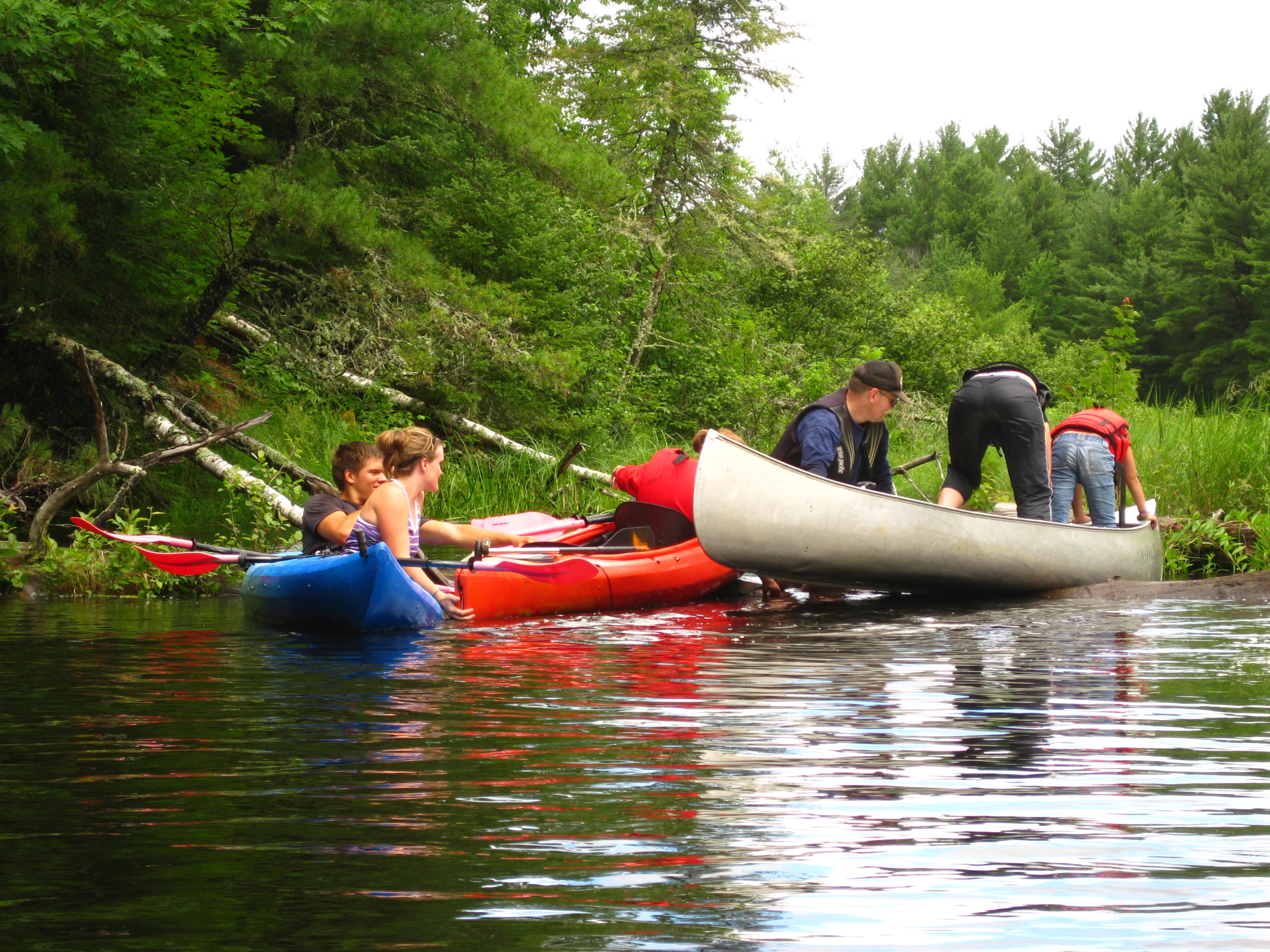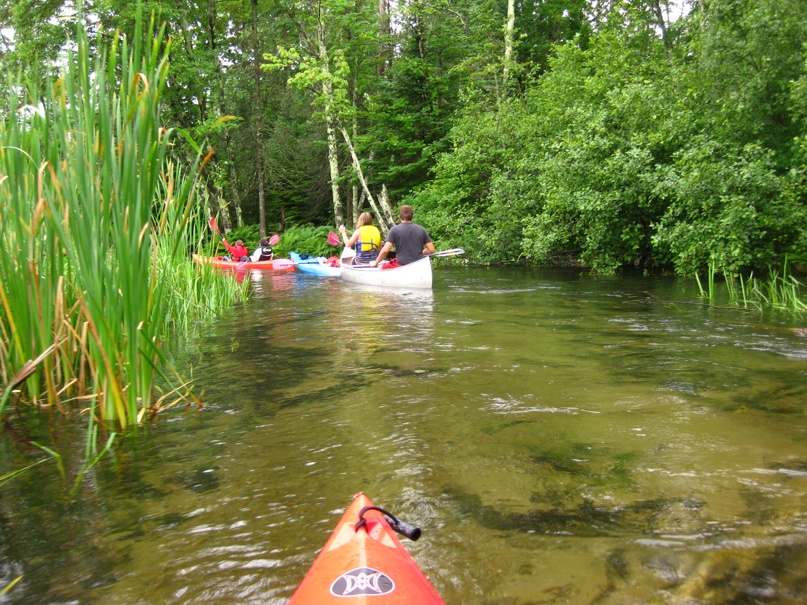 Went on a canoe trip (I was in my Mom’s kayak) down a river on the eastern side of the Lac Du Flambeau reservation. It may have been the Manitiwosh but I am not sure. We put in on Hwy 51 and took out on CR-H. The trip was about 3 hours at a VERY slow pace. One beaver dam and 3 logs but, because of all the rain, we could blast over them instead of portage.