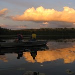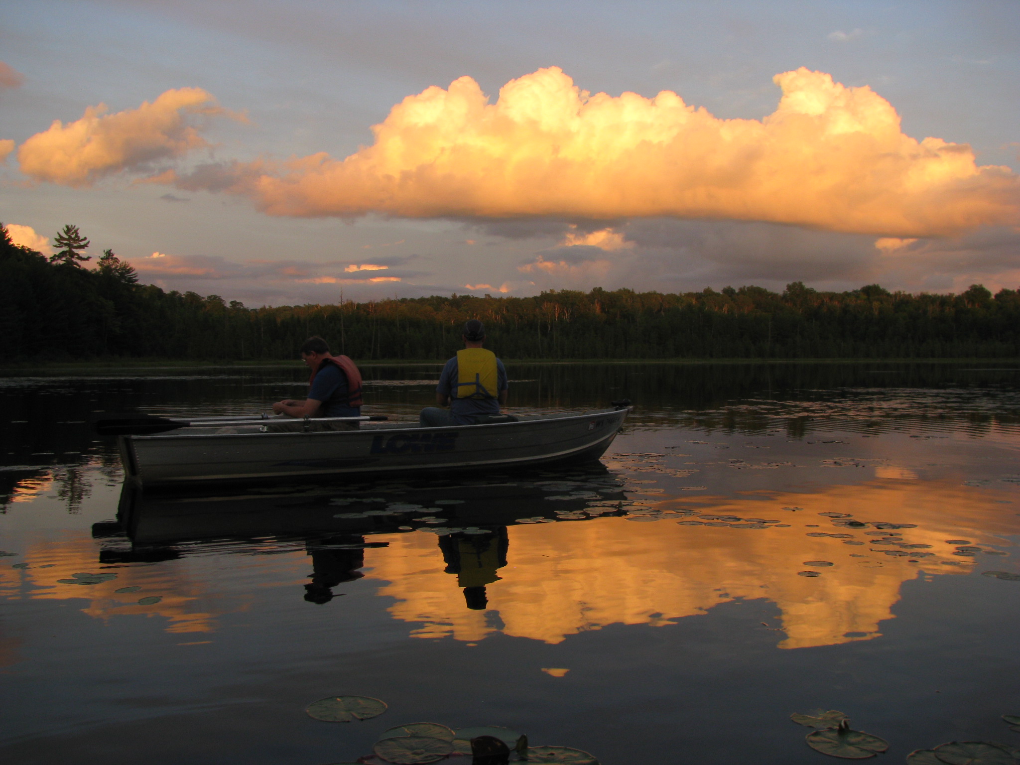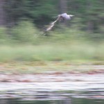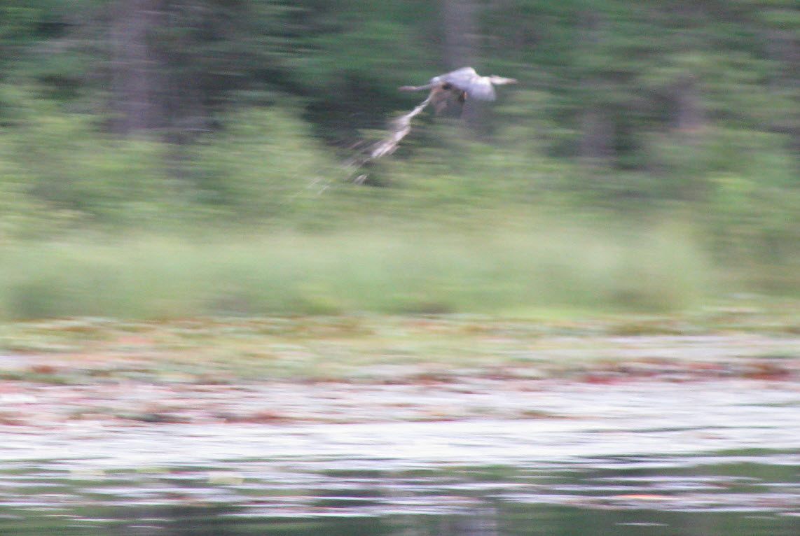 Later it rained, then cleared up and then rained. I paddled around Little Sugarbush Lake for a while with my cameras and support. My brother in laws were fishing. They caught a lot of little fish and almost got a turtle (not on purpose). I scared a crane (picture below).