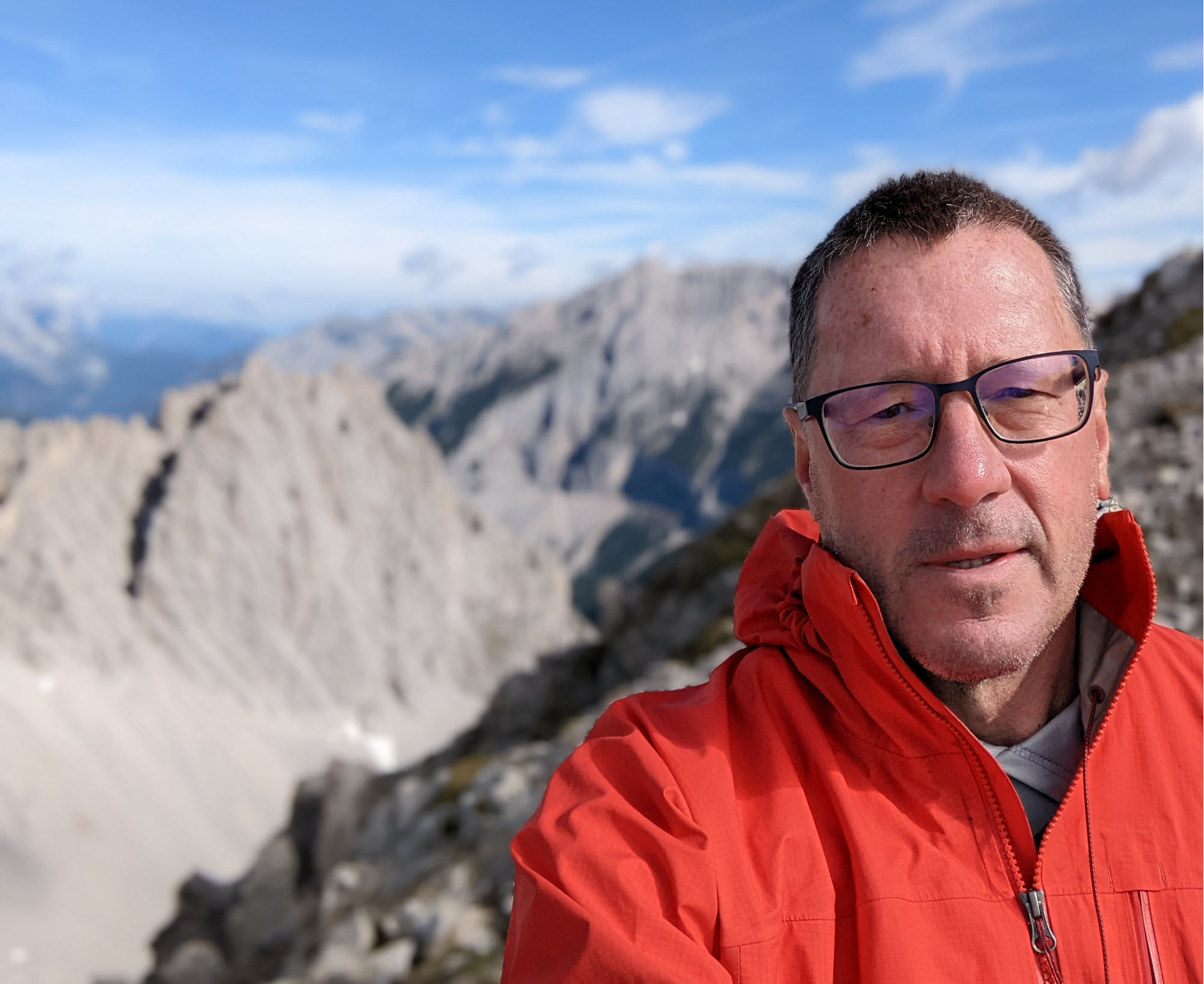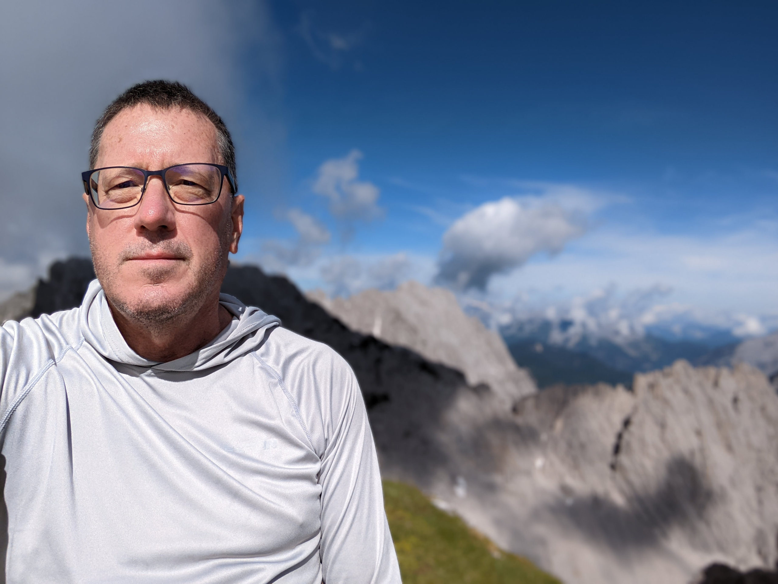 Hotel across the street from train station and a Zoom call with family during the evening thunderstorm. In the morning I got up early to catch the 1st ride of the day to the crest of the Alps above Innsbruck, a bit nervous about being able to make it back down in time to checkout by noon and catch the train to Frankfurt.