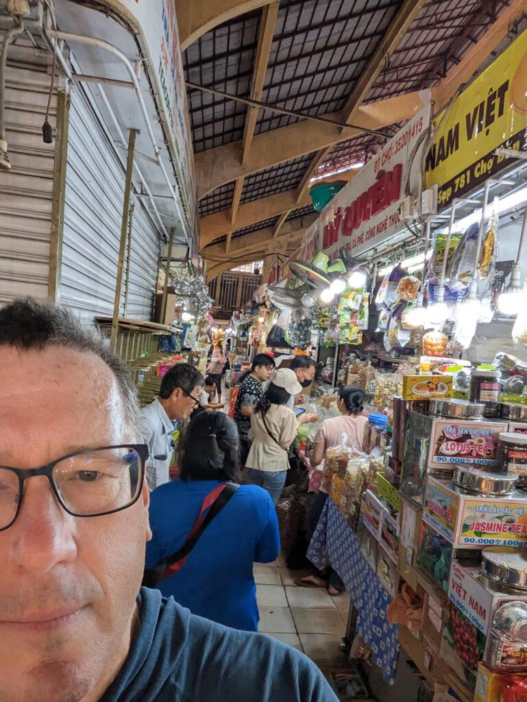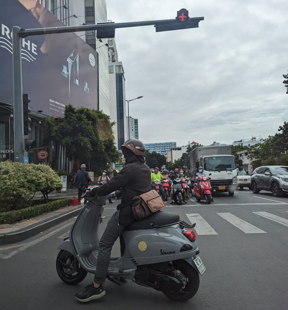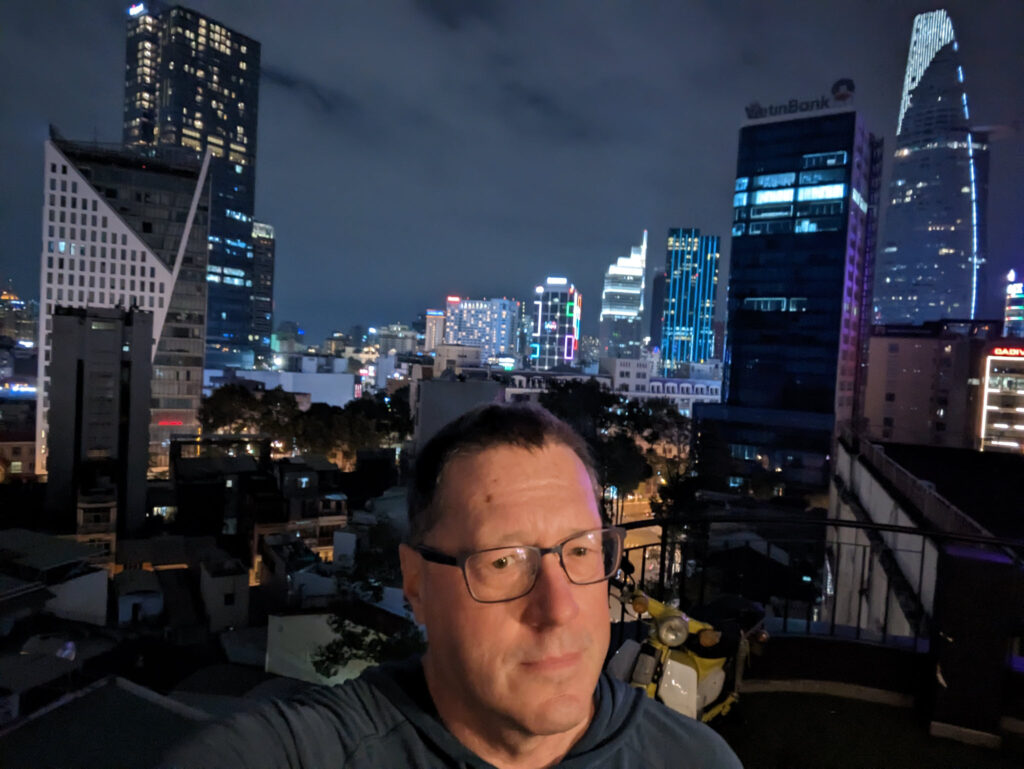 Had my 2nd motorscooter accident. I drove a scooter in Taipei for 5 years and then in Kirkland for another 10. The first incident was in Taipei 25 years ago, I was driving and bumped into a semitruck that stopped suddenly in front of me and bent the front carrier on the scooter. No one noticed. This time was just as bad. I was trying to cross a 4-lane one-way highway along the Saigon River. There was a break in the traffic so I stepped off the curb into the striped pedestrian crosswalk and got hit immediately by a motor scooter going the wrong way. He briefly thought about making an issue of it and we did have a bit of a staredown but then he realized it wouldn’t turn out well for him so he apologized. No injury or damage to either of us. Just a fun story for me.