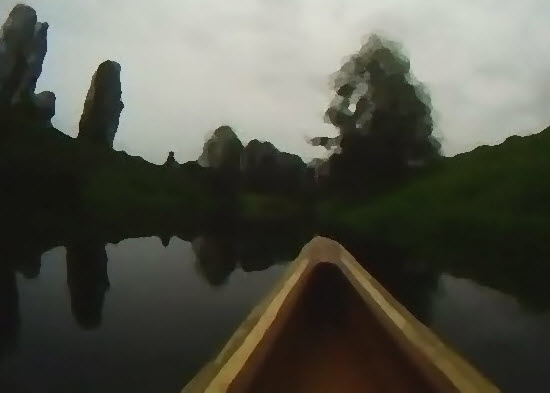 I went for a workout paddle in the canoe today on a nearby ‘river’. 6.8 miles. As I was paddling upstream I was almost hit by a very big jumping salmon. They are starting to run now. I had my egoCam on the bow but I quickly took it off and improvised a salmonCam. ( Fortunately the camera already has a fish-eye lens. Har har har – I kill me!)